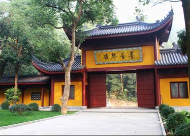 我们一行40多人,跟随法师去杭州及几所寺院参学、行脚。当行脚至灵隐寺西侧石笋峰下时,见一新修的寺院端然座落,上书“永福寺”。踏上古道,漫步前行,只见古木参天,林荫蔽日,丛篁野卉,境幽景深。道旁一块路牌,记述着永福寺的前世今生。