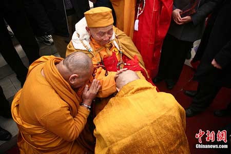 泰国僧人在四川接受百岁长老“摸顶”礼(组图)