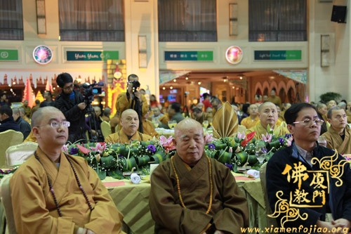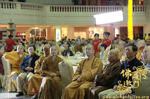 诸山长老有:中国佛教协会会长传印老和尚;新加坡光明山佛教总会主席、普觉禅寺方丈广声大和尚;中国佛教协会副会长圣辉大和尚;中国佛教协会副会长学诚大和尚;五台山普寿寺导师梦参老和尚;香港西方寺方丈宽运法师;中国佛教协会副会长湛如法师;中国佛教协会副会长印顺法师;中国佛教协会秘书长王建;福建省佛教协会常务副会长普法法师;中国佛学院副院长向学法师;四川佛教协会副会长宗性法师;中国佛教协会教务部副主任长顺法师;香港三德弘法中心主席净雄法师;新加坡龙山寺住持、厦门普光寺住持传建法师;宁波市佛教协会会长诚信法师;香港佛学会会长、澳门无量寿功德林方丈戒晟法师;美国旧金山法雨寺住持宏觉法师;香港三宝寺住持德辉法师;福建省佛教协会副会长、泉州开元寺方丈道元法师;福建省佛教协会副会长兼秘书长、福州开元寺方丈本性法师;福建省佛教协会副会长赵雄法师;福建省佛教协会副会长、厦门市佛教协会会长则悟大和尚;福建省佛教协会副会长、厦门市佛教协会常务副会长、观音寺住持定恒法师;福建省佛教协会副会长、雪峰崇圣寺方丈广霖法师;福建省佛教协会副会长、武夷山天心寺住持泽道法师;厦门市佛教协会咨委会主任了法法师;福建省佛教协会副会长如妙法师;广西省佛教协会副会长镛如法师、广献法师;加拿大佛教会会长、美国三潘市佛教会会长达义法师;厦门市佛教协会咨委会副主任:福建省佛教协会副秘书长周书荣;厦门市佛教协会副会长:界象法师、法源法师、法云法师、开敏法师、蔡友益;厦门市佛教协会秘书长净心法师;圆智法师、慧然法师、济群法师等。以及闽南佛学院的历届校友、在校学僧、法师、老师和厦门各寺庙负责人、法师、护法居士等千余人参加晚会。