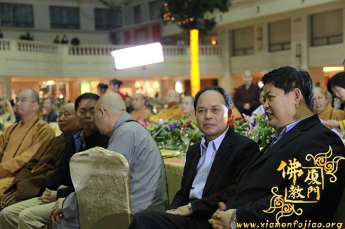 右起:中国佛教协会秘书长 王建,厦门市民宗局局长 曾文瑛