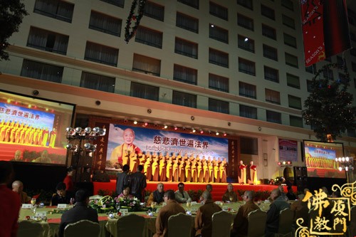 6时30分,妙湛老和尚百年诞辰纪念活动欢迎晚宴暨“仰止怀恩” 文艺晚会在厦门市佛教协会秘书长净心法师主持下正式开始。中国佛教协会常务理事、福建省佛教协会副会长、厦门佛教协会会长则悟大和尚致欢迎辞。