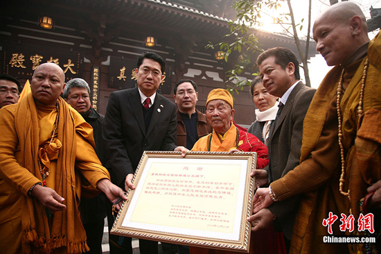 应天寺107岁的佛智长老向诗琳通公主表感恩