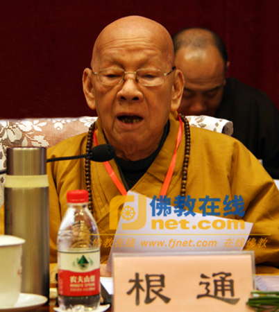 妙江法师代表新一届领导班子礼请根通长老担任省佛协名誉会长。