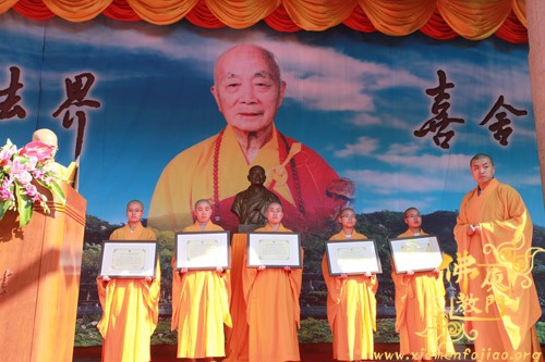 厦门市佛教协会副会长 界象法师 宣读妙湛教育基金缘起