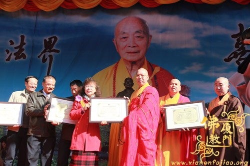 七、为妙湛老和尚生前住过的各寺院颁发铜像供奉证书