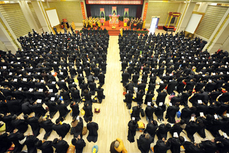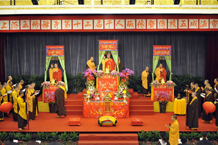 2010年12月12日,上海市玉佛禅寺在觉群楼多功能厅隆重举行了第十二届千人皈依暨传授五戒法会。