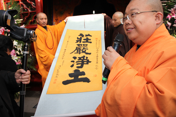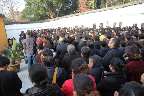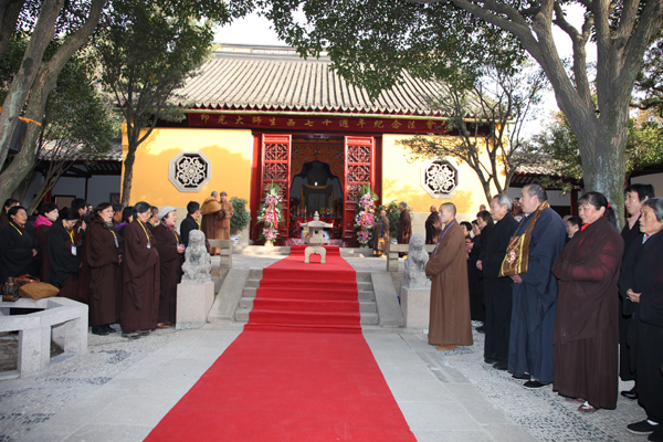 清晨四众弟子念佛等待法会开始(一) 清晨四众弟子念佛等待法会开始(二) 中佛协会长传印长老题词祝贺 明学长老主法 无相法师敬香 向学法师敬香 广霖法师敬香 照诚法师敬香 法会如法如仪 2010年12月9日(农历十一月初四),适逢印光大师生西七十周年之际,苏州灵岩山寺于印公塔院隆重举行“印光大师生西七十周年纪念法会”,来自海内外的佛教四众弟子数千人云集印公塔院,在灵岩山寺方丈明学长老的亲自主法带领下,共同缅怀印光大师的弘法功绩,祝祷灵岩道场法务兴隆,莲风不缀,国家风调雨顺,国泰民安。 本次法会能够殊胜圆满举行,可谓龙天拥护,祖师加持,诸佛欢喜。与会大众均如沐恩泽,法喜充满。