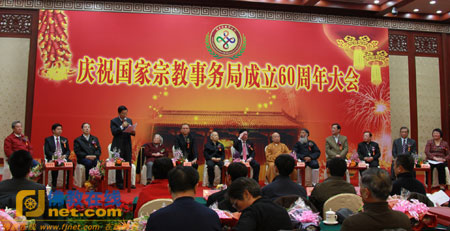 2011年1月17日,庆祝国家宗教事务局成立60周年大会在北京召开。国家宗教事务局局长、党组书记王作安,副局长齐晓飞、蒋坚永、张乐斌等国宗局领导,中国佛教协会会长传印长老、中国道教协会会长任法融会长等五大宗教代表人士出席了大会。