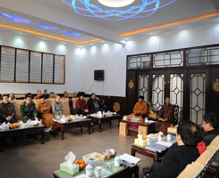 最后曾建华部长通过大岳法师及与会的各位法师,向南岳佛教界广大信众送上新年祝福。大岳会长代表四众弟子对领导的关心与支持深表感谢,并表示会牢记领导嘱托,不负使命,力争佛教工作在新的年度里,继续围绕南岳区工作整体部署,积极发挥作用,引导信众遵纪守法,严持戒律、精进不息,以更加优异的工作作风和新的成绩回报社会。