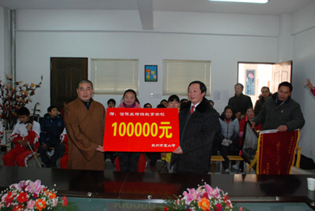 2011年1月18日,江苏苏州市寒山寺监院常勇法师、寒山寺慈善中心钱伟副理事长赶赴宿迁,再次资助宿迁市宿豫区特殊教育学校十万元。此次活动由苏州市民宗局组织,苏州市民宗局郑尧清处长一同前往。