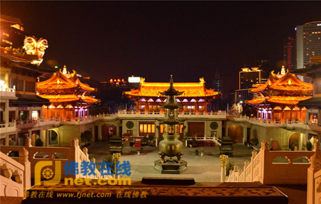 曾获得上海十佳灯光夜景的静安寺,当晚开启了寺院所有夜景灯光,为元旦吉祥祈福撞钟活动增添了节日的喜庆氛围。(文:宁静)
