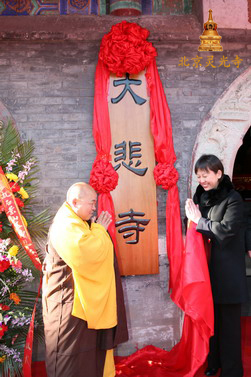 石景山区司马红副区长和区佛协副会长演道法师为大悲寺揭牌
