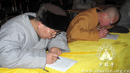 年度考功是少林寺的一项传统教育制度,定于每年的腊月举行,由客堂通知常住及各下院、外地读书、参学、住山僧伽,共聚禅宗祖庭少林寺进行考功。考功共分禅法、禅医、禅武、背诵、禅艺、唱念、讲经等七大项,这项制度是对僧人一年修行、学习的一个检验,旨在鼓励僧众养成勤学的好习惯,激发大家精进修行、学修并重,对筛选和培养僧伽人才起到了很好的作用,并能够促使少林僧团文化的交流和融合。少林寺方丈永信法师希望通过每年的考功,激发僧人学习的勇猛精进之心,为佛教培养更多优秀的僧才。(文:王育民 延贯)