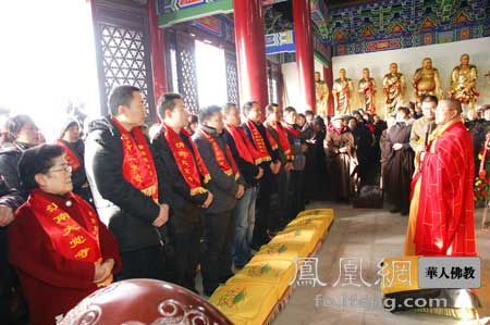 法会上,各位嘉宾和居士在福慧横幅上签名,签名横幅将装藏到佛像中,永久祈福。