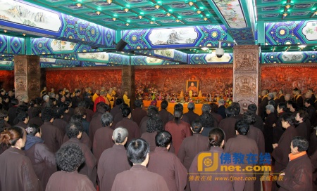 当日9时许,海圆长老纪念法会在新综合楼二层举行。11时,在新综合楼三层举行了供佛斋僧法会,灵光寺常住及各地法师近百人应供。