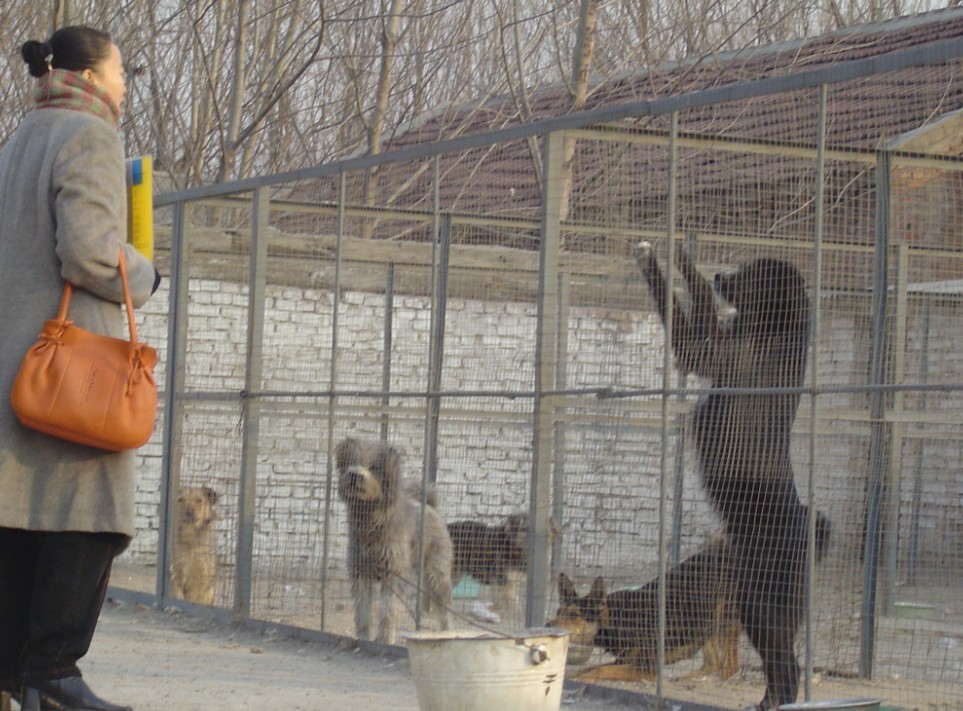 第二次去基地是一个星期以后,再次看见小黄和小黑,我的心情无比激动,只是很欣慰,它们生活的很好,见人活蹦乱跳。我看见狗狗们的笼舍很干净,负责饲养的赵大爷也很有责任心,在这里,母狗都要进行绝育手术,这些天来,基地的孙大夫真的是累坏了,忙得马不停蹄。先是接下了济南狗监狱接回来的六只小狗狗,其中有两只很快就查出得了犬瘟。因为小狗们都在一起,所以都得隔离、打针、吃药,送去医院急救和治疗。她不仅仅前前后后跑得不亦乐乎,还在基地资金极端紧张的情况下想办法为这些不家伙们筹集了医疗费。这中间,她又救助了一个被打断了脊柱的小母狗,一只长了一身皮肤病的小狗。前者伤势十分严重,不能移动,靠喂牛奶活下来,现在已经可以走路了;后一个正在努力治疗中。她有风湿病,腿和脚疼的钻心,而且肿的不敢落地,经常是疼的咬着牙干,用她的话说,看见这些可怜的狗狗就什么都忘了……