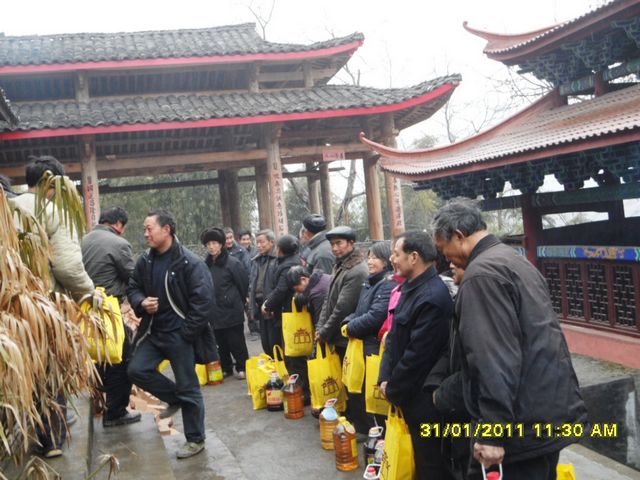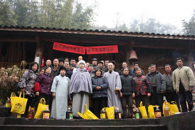 2011年1月31日下午,新春佳节到来之际,北川佛教协会副会长隆续法师等一行代表,带着会长上道下坚大和尚的问候和礼品、围巾、食用油等,前往地震重灾区北川陈家坝,举行了向困难群众送温暖献爱心活动,活动仪式上隆续法师代表道坚法师表达了对灾区困难群众的关心和厚爱,祝福他们过上一个温暖祥和的新春佳节。