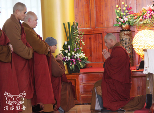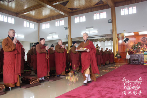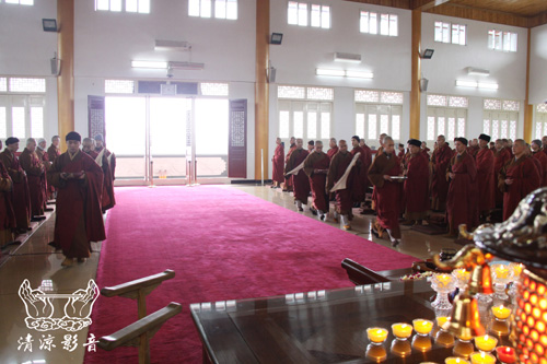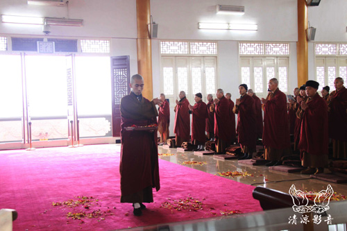 入堂恭摄:持戒清净如满月,身口皎洁无瑕秽。大众和合无