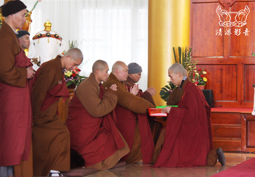 梵呗却洒:稽首礼诸佛,乃法比丘僧,今演毗尼法,令正法久住。