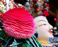 2月17日,塔尔寺艺僧用酥油制作的花卉造型逼真