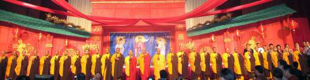 随后,传雄法师引领信众念观士音菩萨大明六字真言“嗡、吗、呢、呗、咪、吽”,祈求观音菩萨保佑众信徒阖家平安、身体健康,并保佑印尼在兔年风调雨顺、国运昌隆,远离2010年频繁的天灾,就算有灾难也把大灾难化为小灾难,把小灾难化为无灾难。