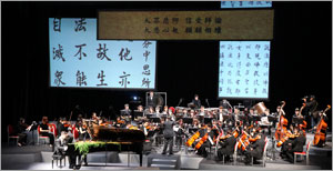 感恩音乐会中还播放了圣严法师开示的翦影片段,彷佛这位国际级的宗教师再次现身为大众说法,时而庄严时而幽默的口吻,让在场的观众们,不禁再次回想起圣严法师,进而将其一生为了弘扬佛法牺牲奉献的精神,做为终身学习的对象。(图:许朝益,文:辜贞宜)