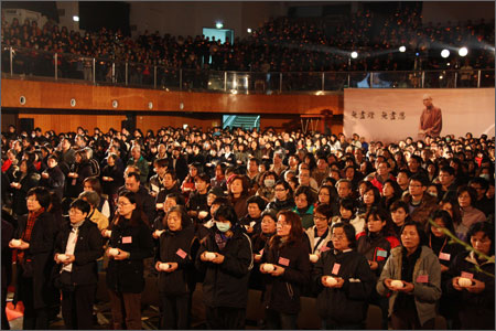 2011年2月19日下午5点,法鼓山首度在台中弘光科技大学毓麟馆所举办的传灯法会,两千多名中部地区的三宝弟子参加,在千盏明灯的交相辉映之下,齐诵佛号,共同发愿,灯灯相续。