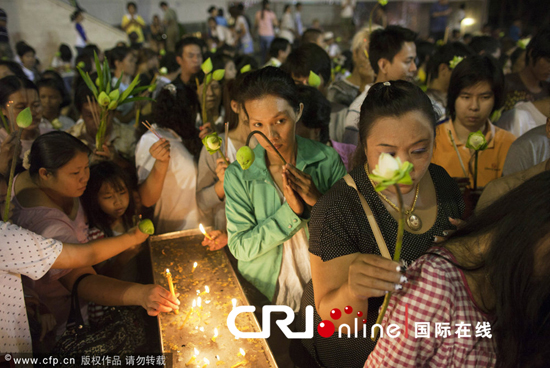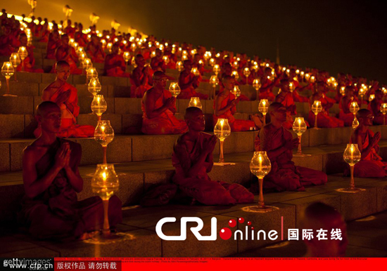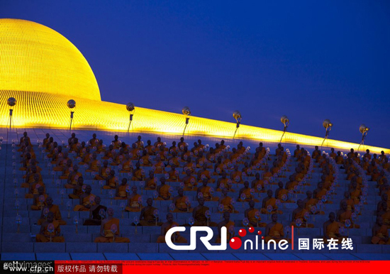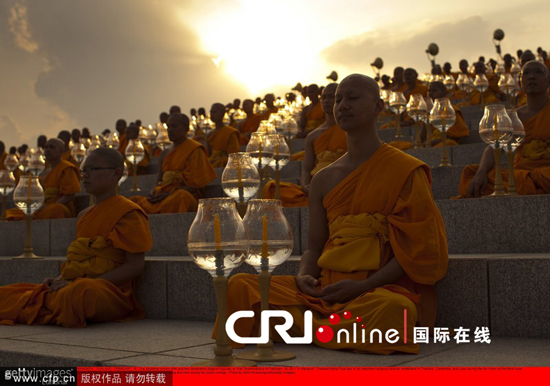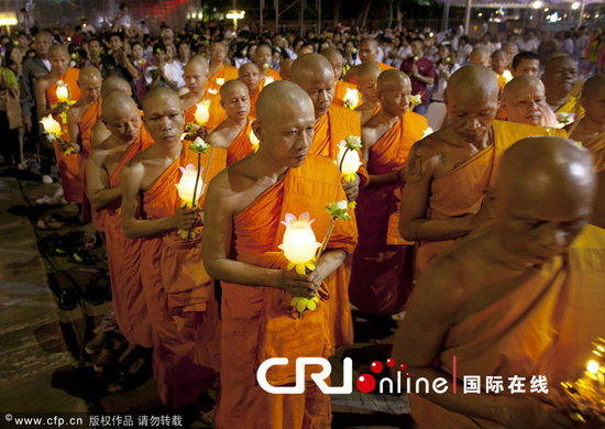 泰国举办宗教活动纪念万佛节 各寺庙和信众虔诚礼佛
