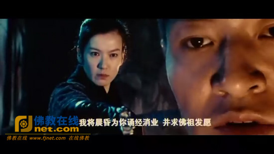 如果说佛教元素在《唐山大地震》中仅仅只是惊鸿一瞥,欲抱琵琶半遮面地仅出现在片尾。那么在《剑雨》中,佛教的缘纷因果、舍身度人等理念在其中别开生面得以展开,丰富了该影片内涵的同时,又区别开了其它一般的功夫片。