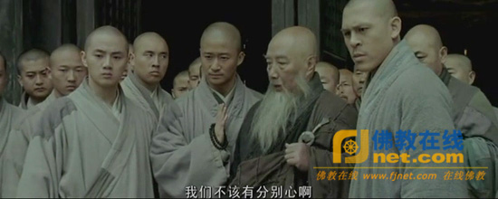 可能故事本身就是在一个佛教道场展开的缘故,在2010年的所有大片中,没有任何一个影片能象《新少林寺》这样,把佛教元素用得如此的酣畅淋漓。而贯穿故事的主线也是佛教的典型故事:杀人如麻的恶魔、被度、觉悟、度他。