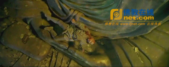 四、火烧少林时,与曹蛮打斗身受重伤的侯杰为救曹蛮被大柱压倒,又被炮弹的气浪推下楼,料定无法生还,最后佛祖的手托救了他。这个画面寓意应该是非常明显的。