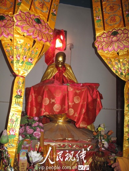 供奉了历经230余年岁月沧桑、劫难,至今完好的了真大和尚的肉身 (图片来源:人民网)