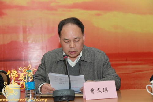 会议书面传达了全国、全省民族宗教工作会议精神。市民宗局局长曾文瑛全面总结了去年我市民族宗教工作,分析当前形势,安排部署了2011年民族宗教工作任务。