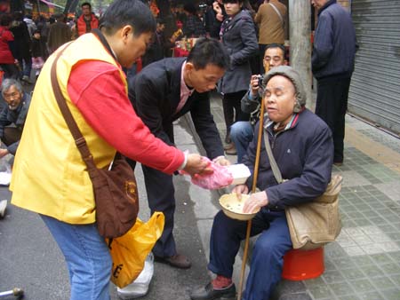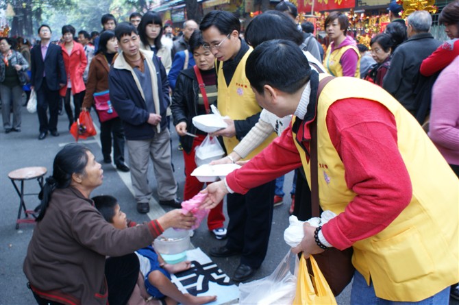 2011年2月3日,是传统新春佳节正月初一,东林慈善功德会广州联络处定于当日上午9:30分在广州光孝寺旁边的水云天素食馆集合,为流落街头的人士派送斋饭。