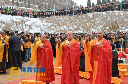 最后,各级领导、法师、贵宾和信众代表为藏经楼奠基培土,并纷纷捐款,为藏经楼的建设奠定了坚实基础,法会圆满。