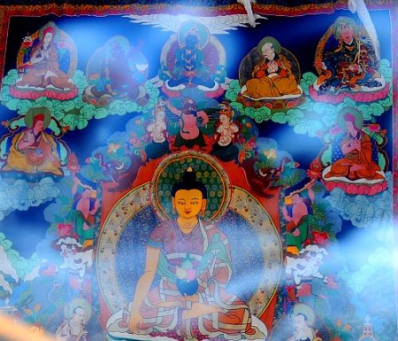西藏山南贡嘎县贡嘎曲德寺举行展佛及鼓舞活动
