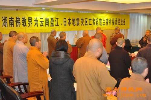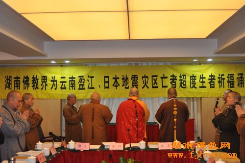 湖南佛教界为云南盈江、日本地震灾区举行祈福诵经法会