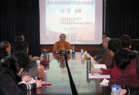 2011年3月30日,天津市佛协副会长、荐福观音寺住持妙贤法师受邀到南开大学作佛学讲座。在为期两个小时的讲座过程中,妙贤法师为哲学院的师生作了《四大菩萨的精神与生活中的你我》的讲座并回答了同学们的提问。精彩的讲座与释疑博得了师生们的热情掌声。