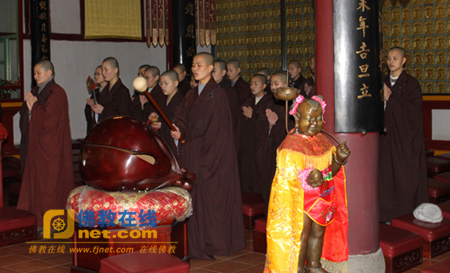 2011年3月23日上午8时许,恭逢观音菩萨圣诞日,福建省福州市象峰崇福寺大雄宝殿内隆重举行观音菩萨圣诞日祝圣法会。象峰崇福寺首座定月法师主法,常住僧众和福建佛学院女众部师生共同参加了法会。