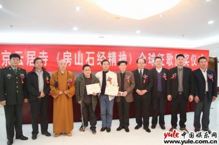 2011年3月25日,北京房山云居寺“房山石经精神”全球征歌活动颁奖典礼在北京举行。自2010年9月18日起,云居寺“房山石经精神”全球征歌活动拉开帷幕,历时半年,得到了国内外社会各界人士广泛关注和响应的活动圆满结束。活动共收到应征信件、电子邮件、光盘200多件。经过由著名专家学者组成的专家评审团对应征歌曲的初评、复评层层选拔最终评选出一、二、三等奖15名。