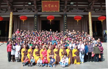 法会结束后,信众们在大雄宝殿与智超法师及诸位引礼法师合影留念,大家法喜充满,并共同祈愿正法久住,世界和平,国泰民安,风调雨顺。(图、文:福报、培林)