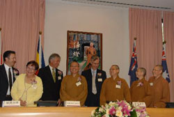 佛光大学佛教学院院长慧开法师在典礼后,为南天大学开启第一堂课,主讲“佛教在21世纪的影响BUDDHISM:A Growing Influence in the 21st Cnetury”,由佛陀的教法,展现其人间性,在21世纪落实人间佛教的理念,由此揭开人间佛教在澳洲教育领域中落实本士化的序幕。(文:心会 毛碧霞 图:吴孟健)