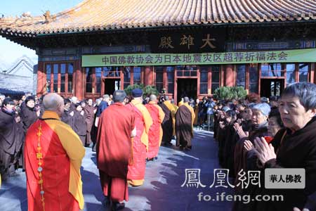 北京广济寺隆重举行为日本地震灾区超荐祈福法会。(图片来源:凤凰网华人佛教 摄影:曹立君)