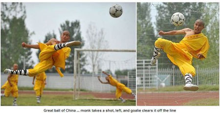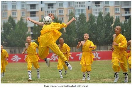 由于中国足球水平一直上不去,很多人都纷纷出谋划策。去年10月,少林寺武僧团培训基地开始组建青少年足球学校,目前学校已经挂牌。少林寺武僧团培训基地总教头释延鲁认为他们可以将武术和足球强强联合,是足球训练的一种新的探索。半个多月前,中国足协还送给该校1000个足球,河南省足协也打算给学校派过去几名优秀的足球教练。