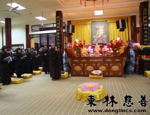 东林慈善的志愿者及工作人员,早早的来到东林寺法堂,等待今天上午的共修活动,一起读诵《普贤菩萨行愿品》,礼拜八十八佛。大家身着海青,面带笑容,欢喜期待。八点整,上镜下义法师与东林寺常住们到达法堂,维那师起腔,大家齐唱炉香赞。“炉香乍热法界蒙熏,诸佛海会悉遥闻”祈求诸佛菩萨庇护这支菩萨的团队在菩提路上勇往直前,救度众生!