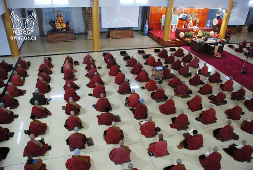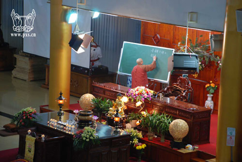 界诠法师在平兴寺圆通殿宣讲《肇论》(图)