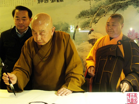 觉光长老在观音寺大殿拈香礼佛后,为观音寺题字“如意自在”以作纪念。随后,觉光长老一行在南京市宗教局、市佛教协会、溧水县宗教局等相关领导陪同下参观了观音寺佛教文化展厅,并与大众合影留念。(古鸡鸣寺供稿)
