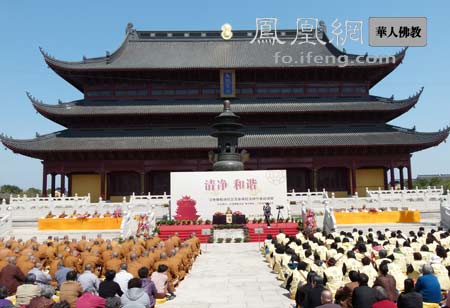 “清净 和谐——汉传佛教讲经交流会讲经法师代表巡讲团”活动在苏州阳澄湖畔水天佛国的重元寺大雄宝殿广场隆重举行。(图片来源:凤凰网华人佛教 摄影:桑吉扎西)