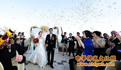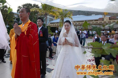 80后美籍华人南山举办佛教婚礼 僧人扮牧师角色