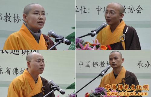 参加此次主讲的四位法师都是以往三届“汉传佛教讲经交流会”的获奖法师代表,分别是来自福建尼众僧学院的法翔法师,中国佛学院的妙一法师、道就法师,杭州佛学院的宗淼法师。四位法师都是佛学院的在读学生,是我国佛教界的优秀青年僧人代表,他们法相庄严、威仪具足、思维敏捷、机锋巧妙,展现了我国当代佛教僧人的良好风貌。